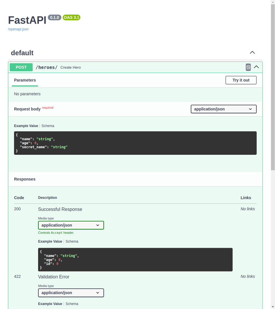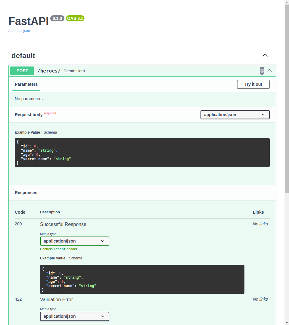 HeroPublic 中的所有字段都与 HeroBase 中的相同,其中 id 声明为 int (不是 None ):